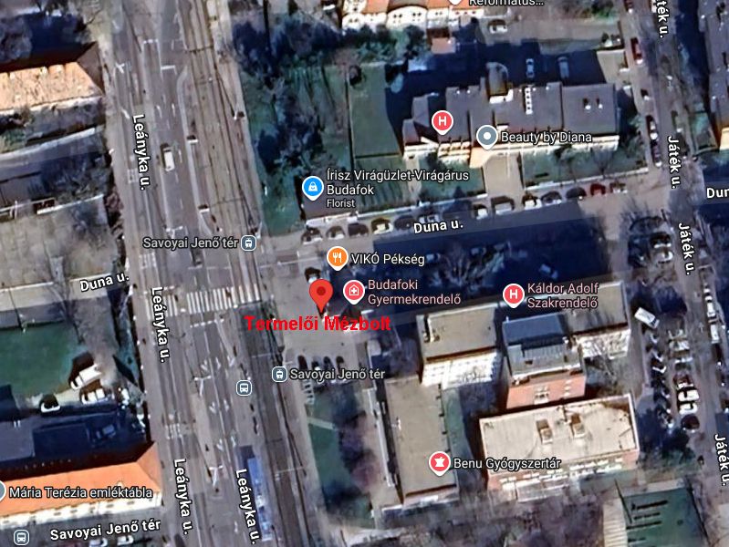 A budafoki Káldor Adolf Szakorvosi Rendelőintézet és a "Savoyai Jenő tér" villamosmegálló közötti területen található.